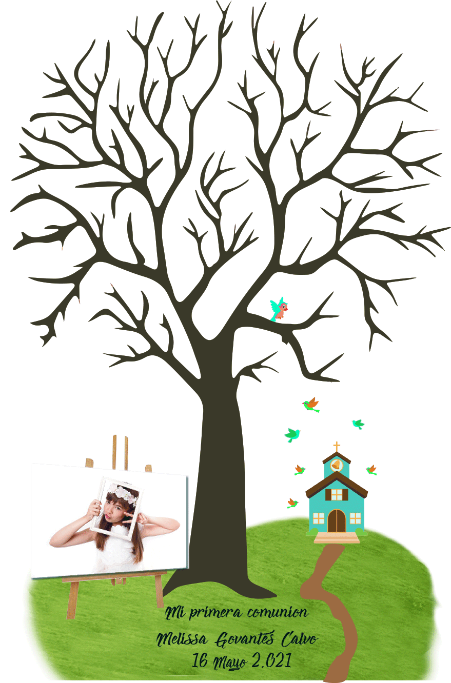 En caso de que quieras añadir una imagen de la chica o el chico, la colocaríamos a pie del árbol en el lado izquierdo. Si quieres ver el resultado final antes de que te lo enviemos solo tienes que solicitarlo en las observaciones durante la compra y te enviaremos una prueba por correo electrónico para que veas como quedaría.