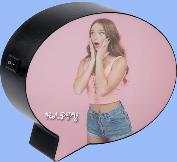 Divertida caja de luz iluminada con ledes blancos. Puedes personalizarla con la imagen que más te guste o esa frase especial que te hace sonreír. Si lo prefieres tambien disponible sin imprimir y entregada con tres rotuladores con borrador para que tu mism@ la decores.