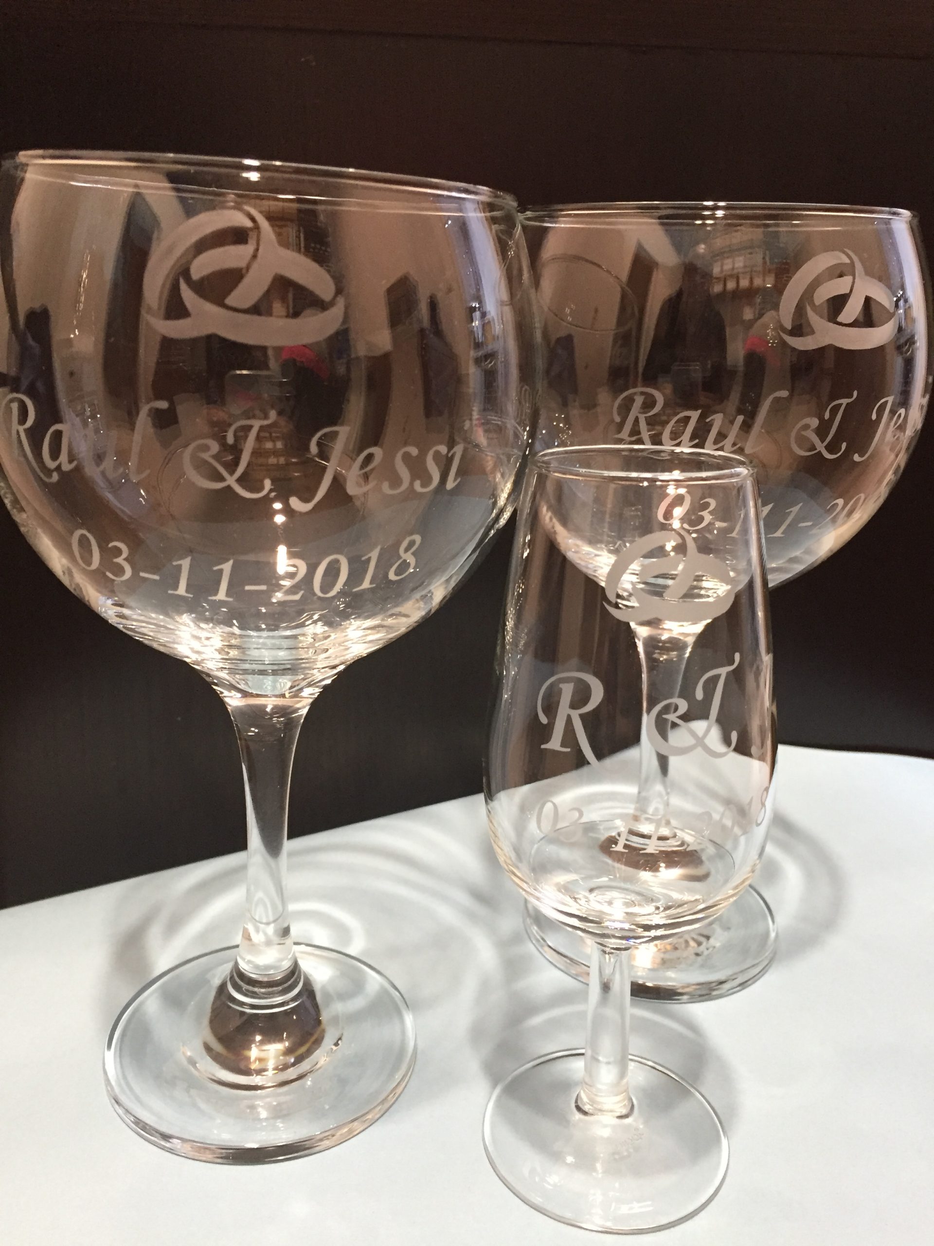 Copa de Balón cristal personalizada con nombres, fechas… Precio unidad.