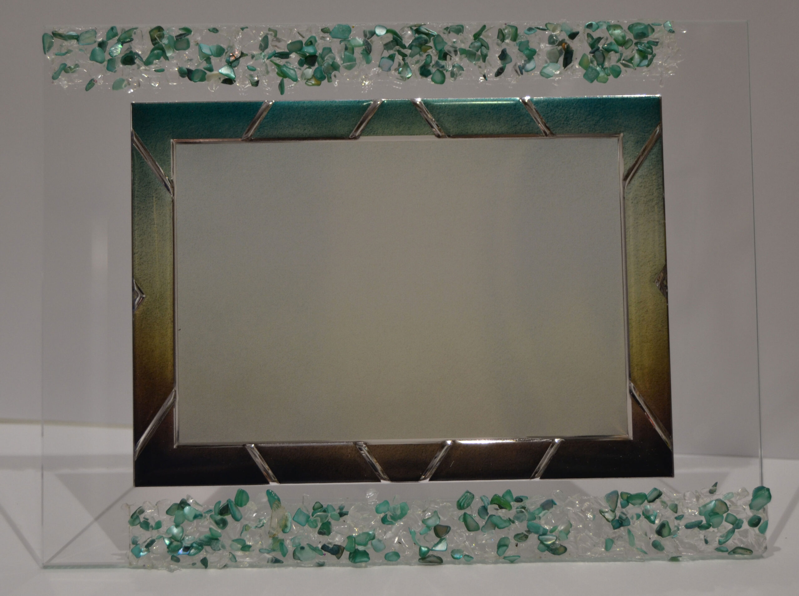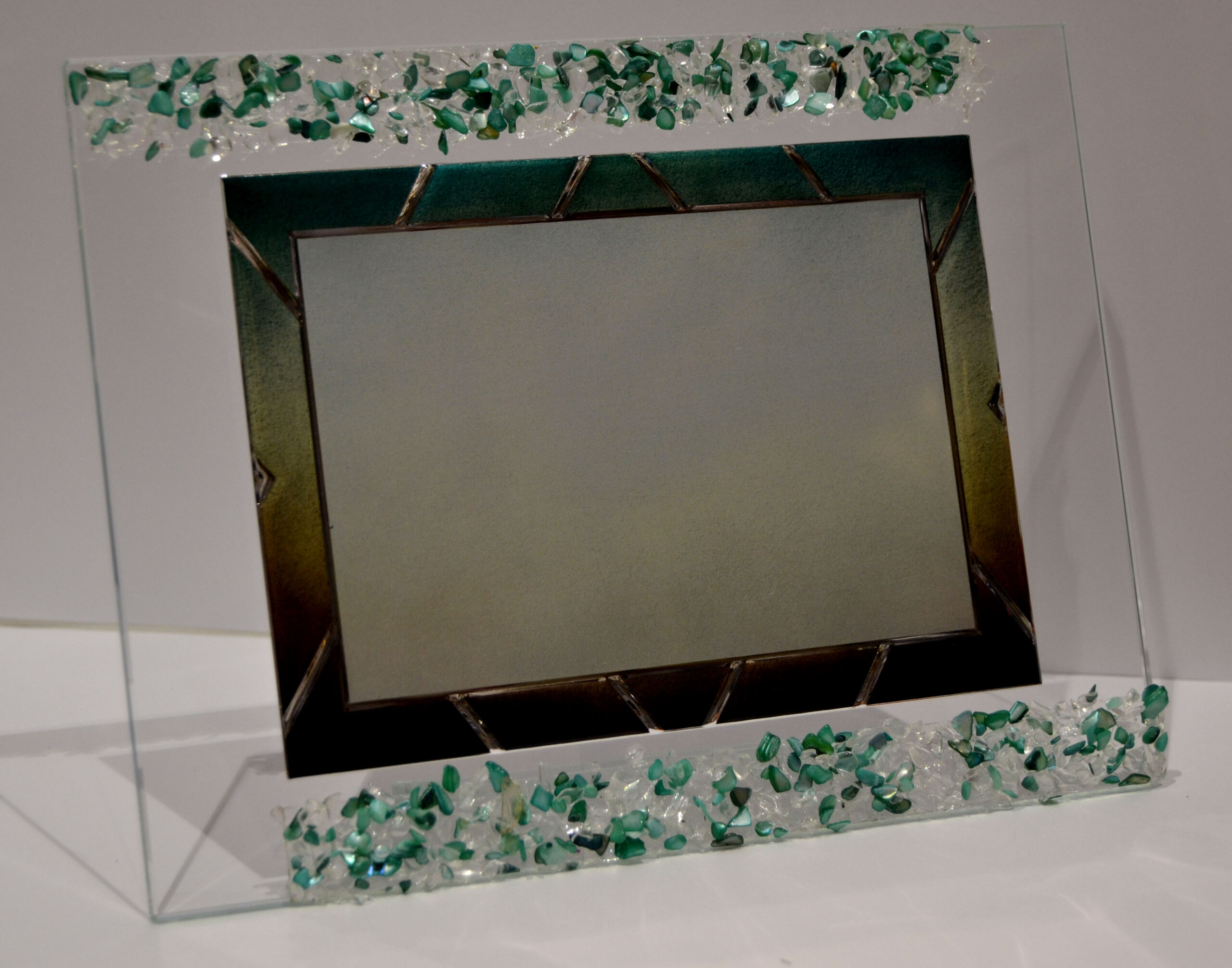 -Placa de cristal con incrustaciones y placa de metal plateado.Tamaño 240×180 mm
