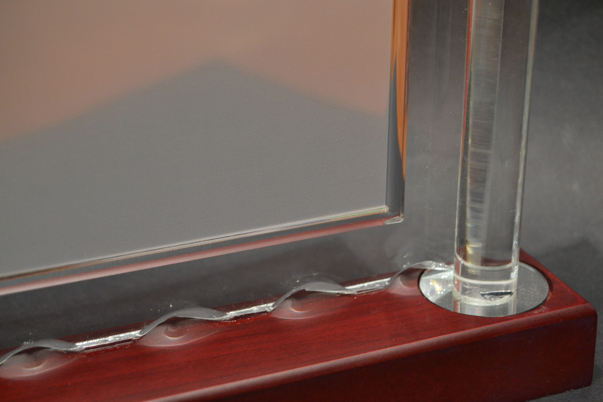 Tienes que homenajear a una persona especial. Puedes tener ese reconocimiento,homenaje,felicitación o identificación con esta elegante placa homenaje en cristal y madera con aplique plateado.